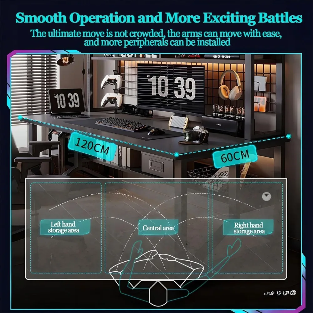 - 【Enhance Your Gaming Experience】With its large size and ergonomic design, this gaming desk provides the ultimate comfort and convenience for long gaming sessions. The ample workspace allows for easy multitasking, while the thoughtful storage solutions keep everything organized