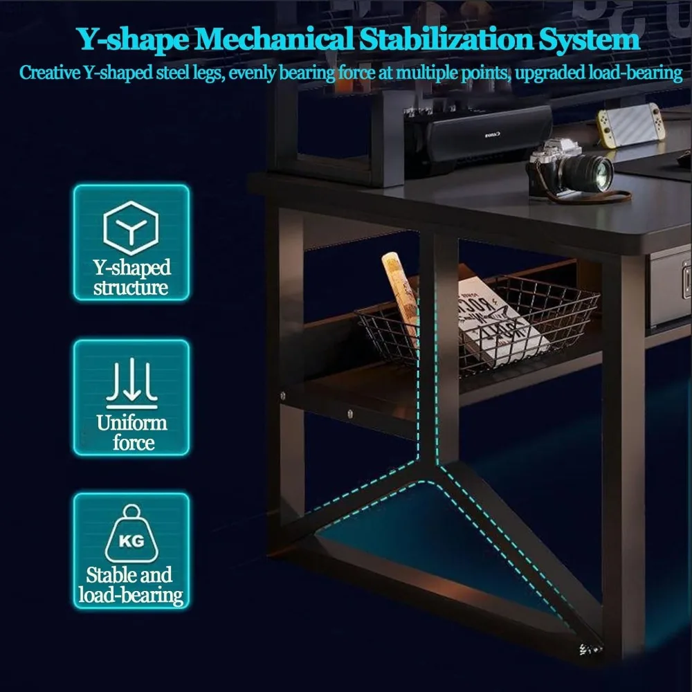 - 【Durable Construction & Easy Maintenance】Made from a combination of wood and metal, this gaming desk is built to last. The scratch-resistant and waterproof design ensures that the desk surface stays in pristine condition even with daily use. Cleaning is a breeze, making it perfect for busy gamers who need a low-maintenance solution