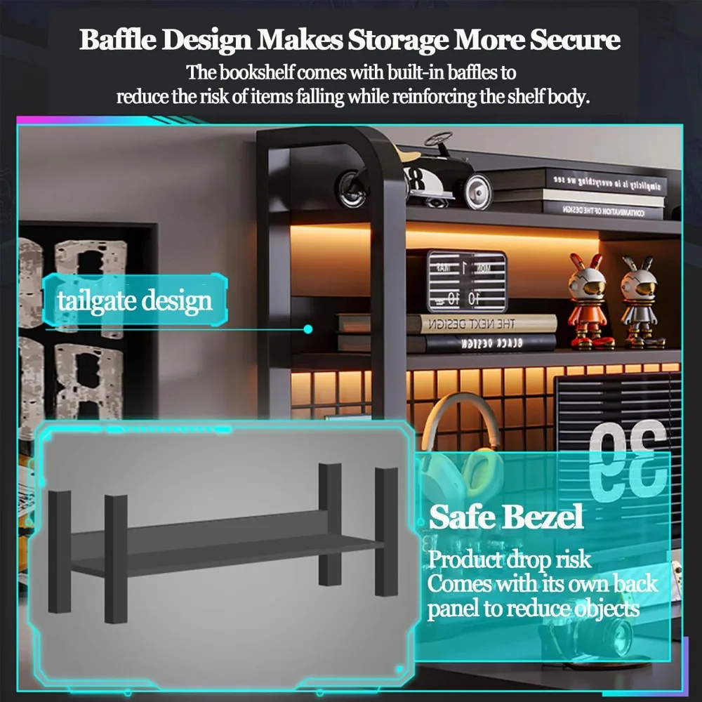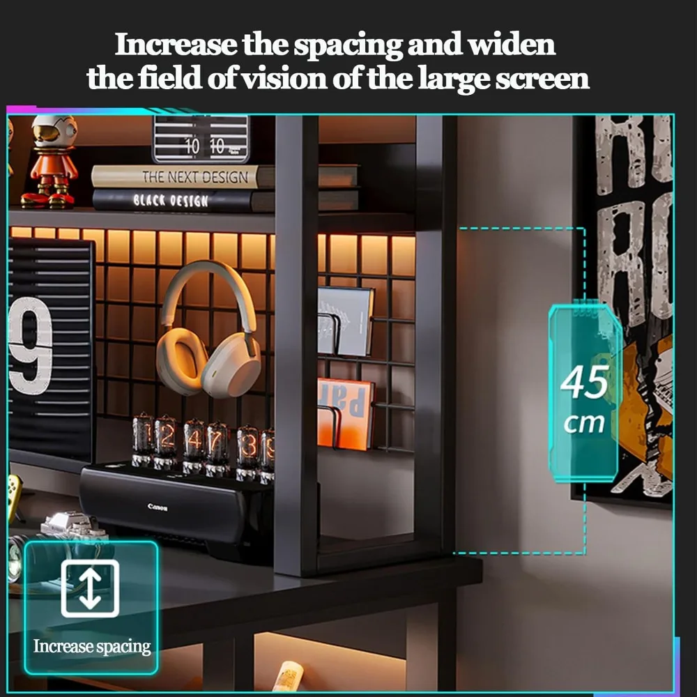 Gaming Desk, 2-Tier Home Multipurpose Desktop Bookshelf, Large PC Table Computer Desk with Shelves with Metal Frame and Bookshel