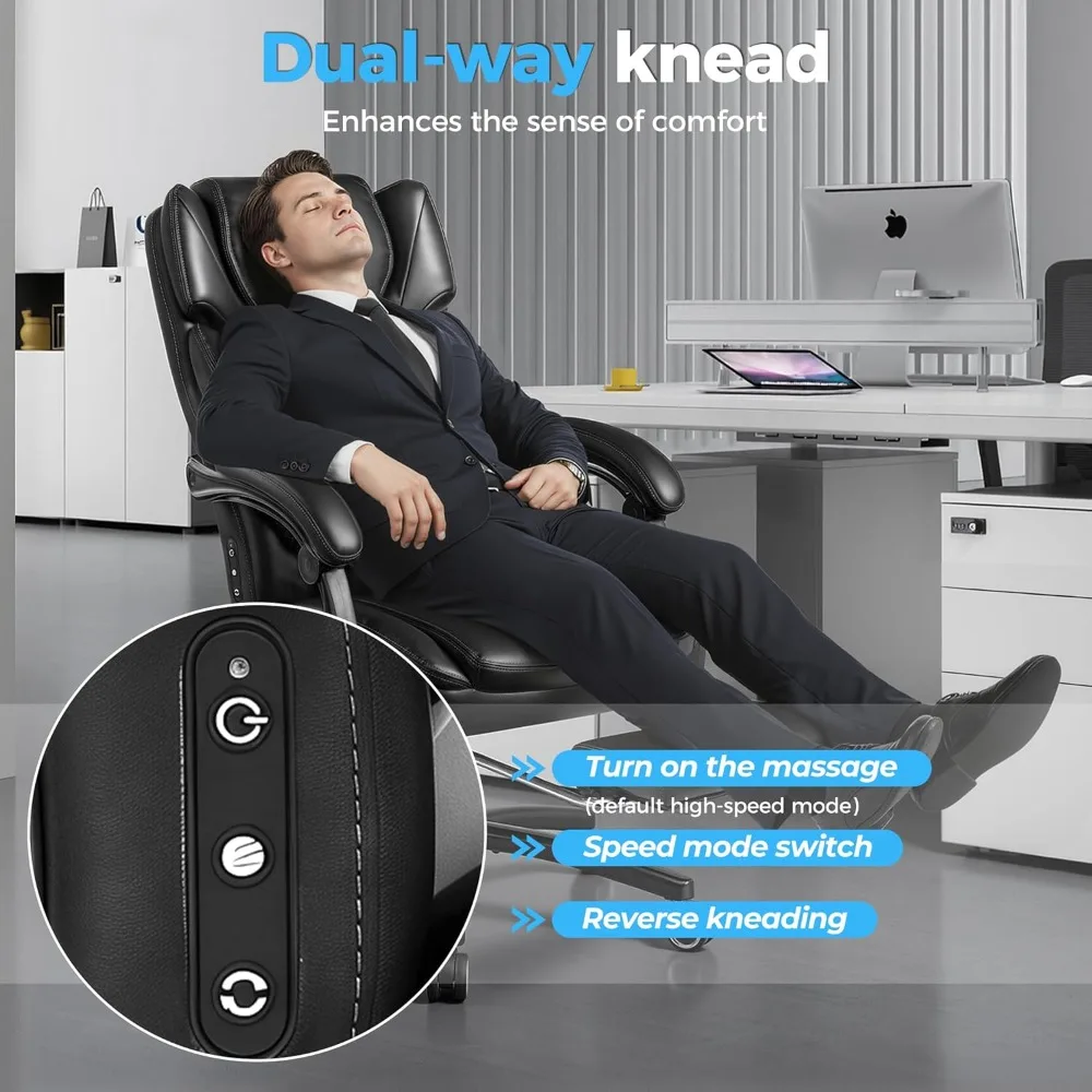 Kneading Massage Office Chair with Foot Rest,Big&Tall Ergonomic Reclining Gaming Chair, 3D Linkage Armrests, Lumbar Pillow, Clas