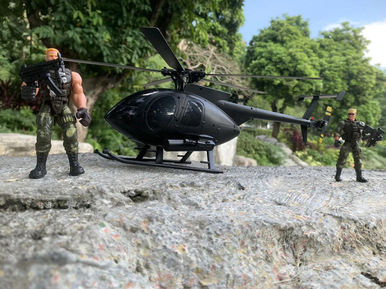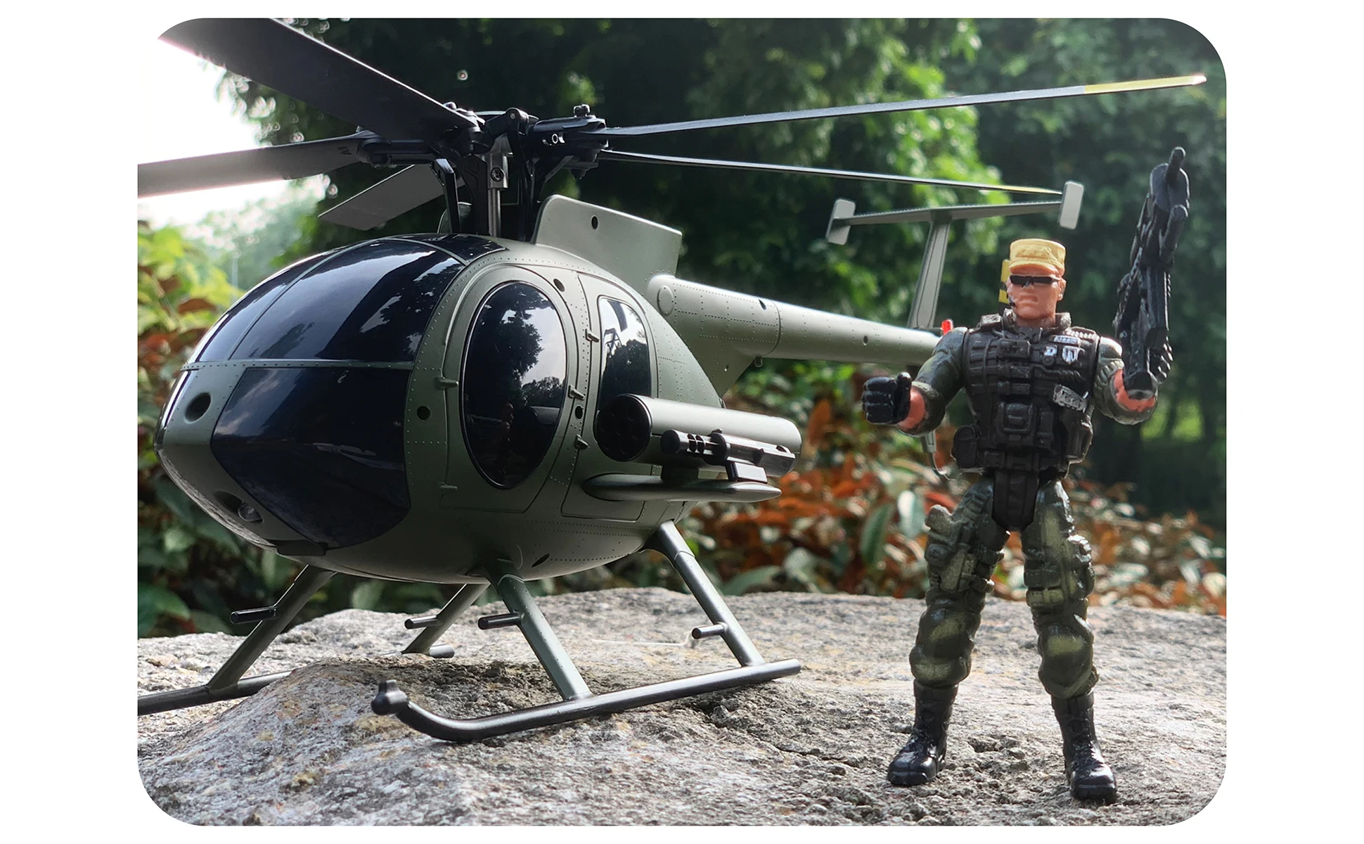 Compared to other sellers, we have added optical flow positioning (black dots) under the belly of the MD500 C189 helicopter