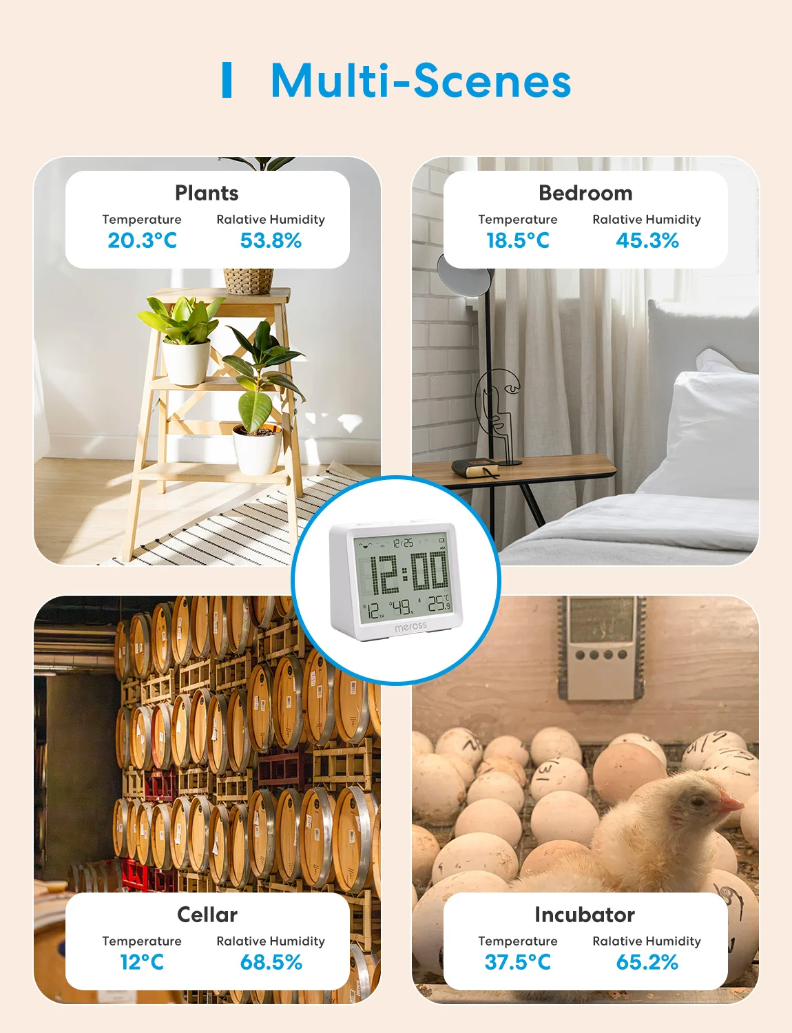 •Multi-Scenario Use: Can be placed in the living room, bedroom, basement, baby’s room, wine cellar, plant stand, greenhouse, and other locations to monitor temperature, humidity, and other data at any time.