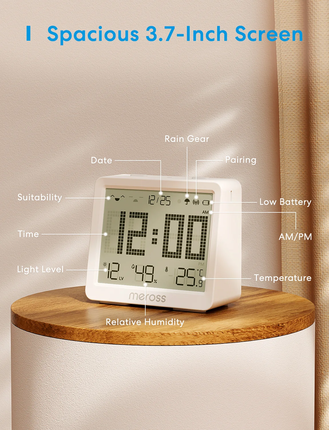 •Extra Large Screen: 3.7-inch large screen that can display temperature, humidity, light, time, date, and other information simultaneously.