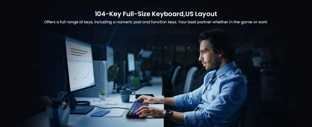 wegear responsive computer keyboard ensures zero missed inputs with 100% anti-ghosting – all 104 keys respond instantly, even during rapid presses. The handy Win Lock (Fn+Win) keeps pop-ups from ruining clutch moments